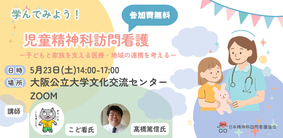 本研修では、病院看護と訪問看護の実践者から、児童精神科訪問看護の基礎と実際を学び、多職種連携のあり方について考えます。